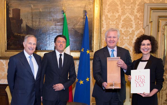 Jeffrey Immelt, presidente e AD di General Electric, ritira il Premio Leonardo International durante un incontro con il Presidente del Consiglio Matteo Renzi